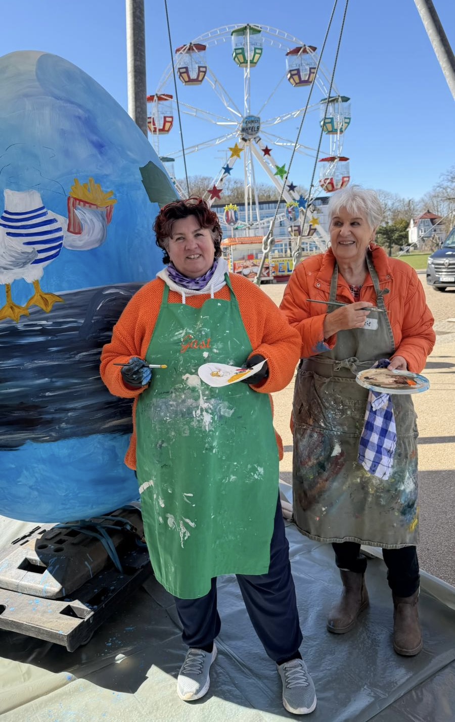 All diese Maßnahmen liefen parallel zur RiesenOstereierParade, an der wir auch in diesem Jahr wieder teilgenommen haben. Das vereinseigene RiesenOsterei wurde diesmal von unseren Mitgliedern Bettina Lohff und Rosemarie Willig kunstvoll gestaltet und fand beim Publikum sehr großen Anklang. Danke, Bettina und Rosemarie!
